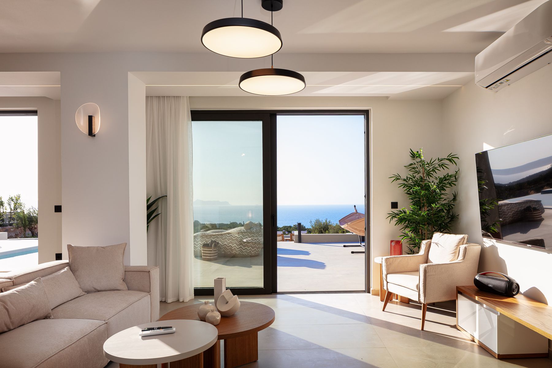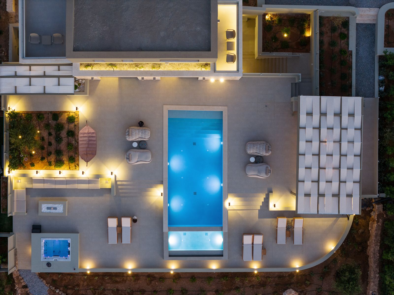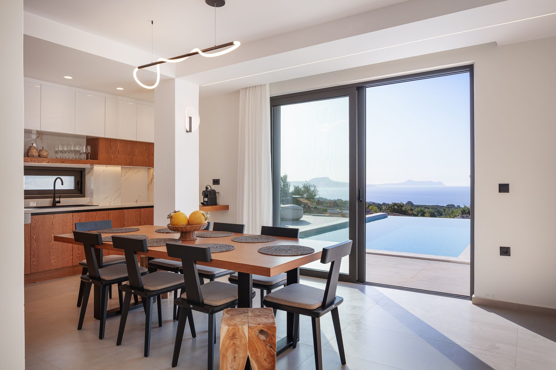 Relish lazy mornings entwined between the sheets, gather at the cozy sofa’s gazing out to the shimmering pool & fall asleep to the sound of the summer breeze. Set in Prines Village, this is the a holiday home for friends, families & loved ones with a difference. With home-from-home comforts, the villa combines elegance and unique touches to ensure a stay less ordinary in its five available bedrooms. The Villa offers sublime design, at its bedrooms & bathrooms, an open plan living-cum area with a fully equipped kitchen. The outdoor settings are wonderful also, featuring a 50m2 Private Eco Infinity Pool 1,50sqm depth (that can be heated with an additional fee), a 5m2 children’s pool (0,20sqm depth, an outdoor 6 seater spa whirlpool (can be heated), a fire pit and a covered dining area, with BBQ (Gas) making this residence a one-of-a-kind for family gatherings. Perched just a 5 minutes drive from the nearest beach in Prines & featuring five bedrooms & six bathrooms, a Living Room with Kitchen area at the ground floor and another kitchen at the semi-ground floor, the villa can comfortably welcome up to 12 guests to cherish a multigenerational holiday break with loved ones.