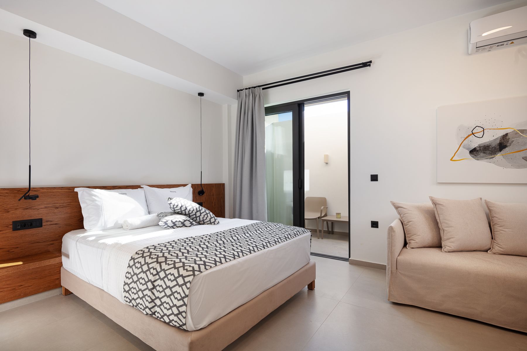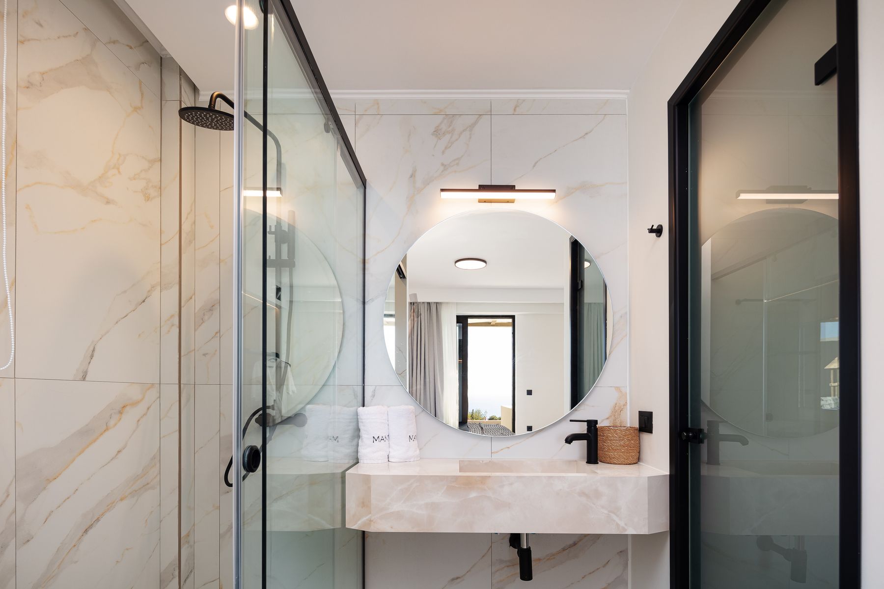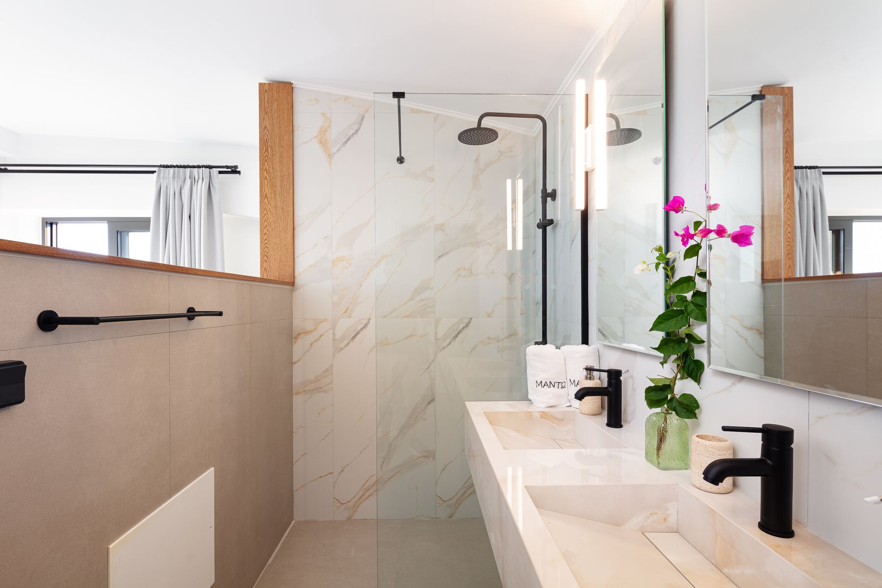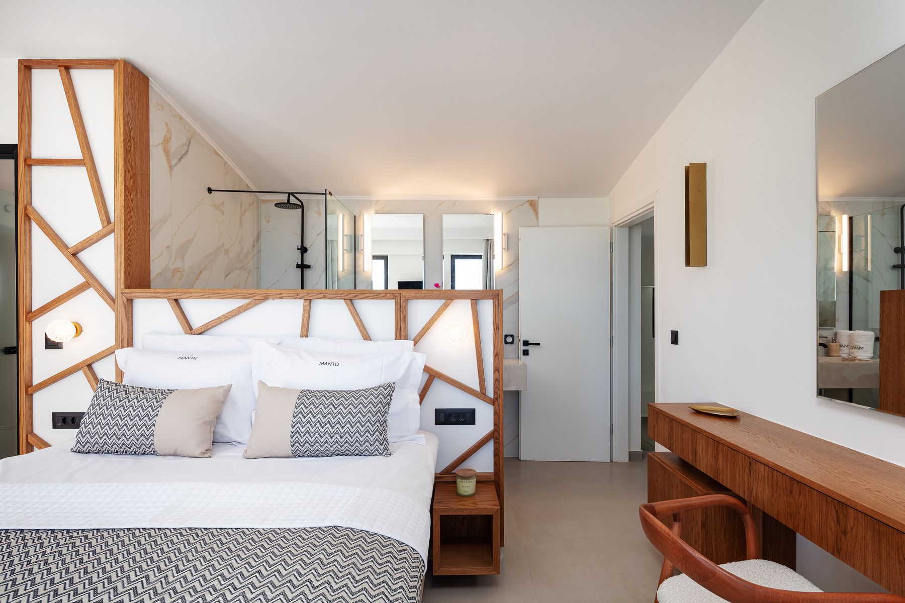 Relish lazy mornings entwined between the sheets, gather at the cozy sofa’s gazing out to the shimmering pool & fall asleep to the sound of the summer breeze. Set in Prines Village, this is the a holiday home for friends, families & loved ones with a difference. With home-from-home comforts, the villa combines elegance and unique touches to ensure a stay less ordinary in its five available bedrooms. The Villa offers sublime design, at its bedrooms & bathrooms, an open plan living-cum area with a fully equipped kitchen. The outdoor settings are wonderful also, featuring a 50m2 Private Eco Infinity Pool 1,50sqm depth (that can be heated with an additional fee), a 5m2 children’s pool (0,20sqm depth, an outdoor 6 seater spa whirlpool (can be heated), a fire pit and a covered dining area, with BBQ (Gas) making this residence a one-of-a-kind for family gatherings. Perched just a 5 minutes drive from the nearest beach in Prines & featuring five bedrooms & six bathrooms, a Living Room with Kitchen area at the ground floor and another kitchen at the semi-ground floor, the villa can comfortably welcome up to 12 guests to cherish a multigenerational holiday break with loved ones.